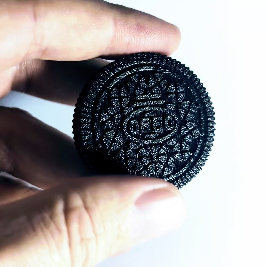 The exterior replicates Oreo's iconic black and white cream filling design, with a charmingly rounded form, while the integrated precision ratchet mechanism delivers a satisfying “click” with each rotation, mimicking the de-stressing sensation of twisting a real cookie.